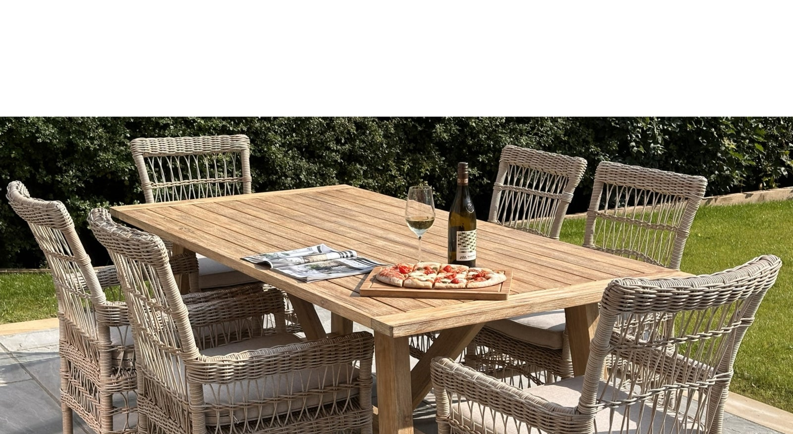 Churn Teak Round Table 100cm & 4 Henley Stacking Armchairs