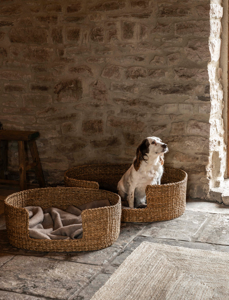This set of two Brading Pet Beds is handwoven from stunning natural seagrass to give the look of a traditional dog basket. The smaller of the two, measuring 25cm by 70cm by 55cm, is suitable for smaller breeds, such as terriers, bulldogs and pugs, while the larger, measuring 25cm by 90cm by 70cm, is perfect for medium-sized breeds such as labradors and spaniels. We also have a matching Brading Pet Bowl Mat to complete the set.