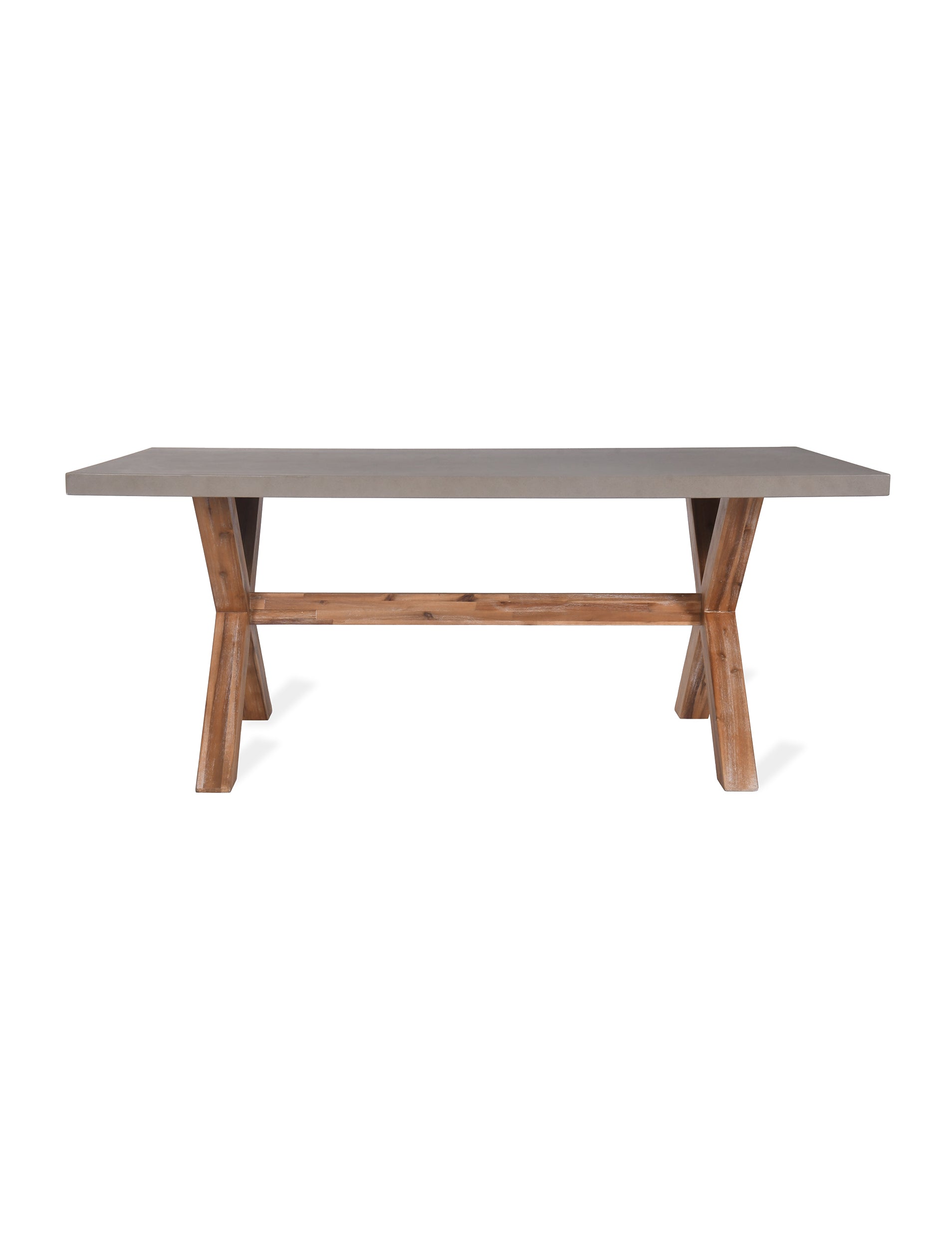 Dine in contemporary style with the stylish Burford Table. Crafted with a polystone table top, it's available in natural or grey colourways and features contrasting acacia wood legs in a modern criss-cross design. This table comes in two sizes and suits feasts for a few. It's an ideal design for patio parties, garden celebrations and all your outdoor hosting desires. Pair with our Mylor or Hampstead Chair collections. A robust, weatherproof build means this table will weather the test of time - though to preserve its life, we recommend covering it up to protect it from the elements in the depths of winter.
