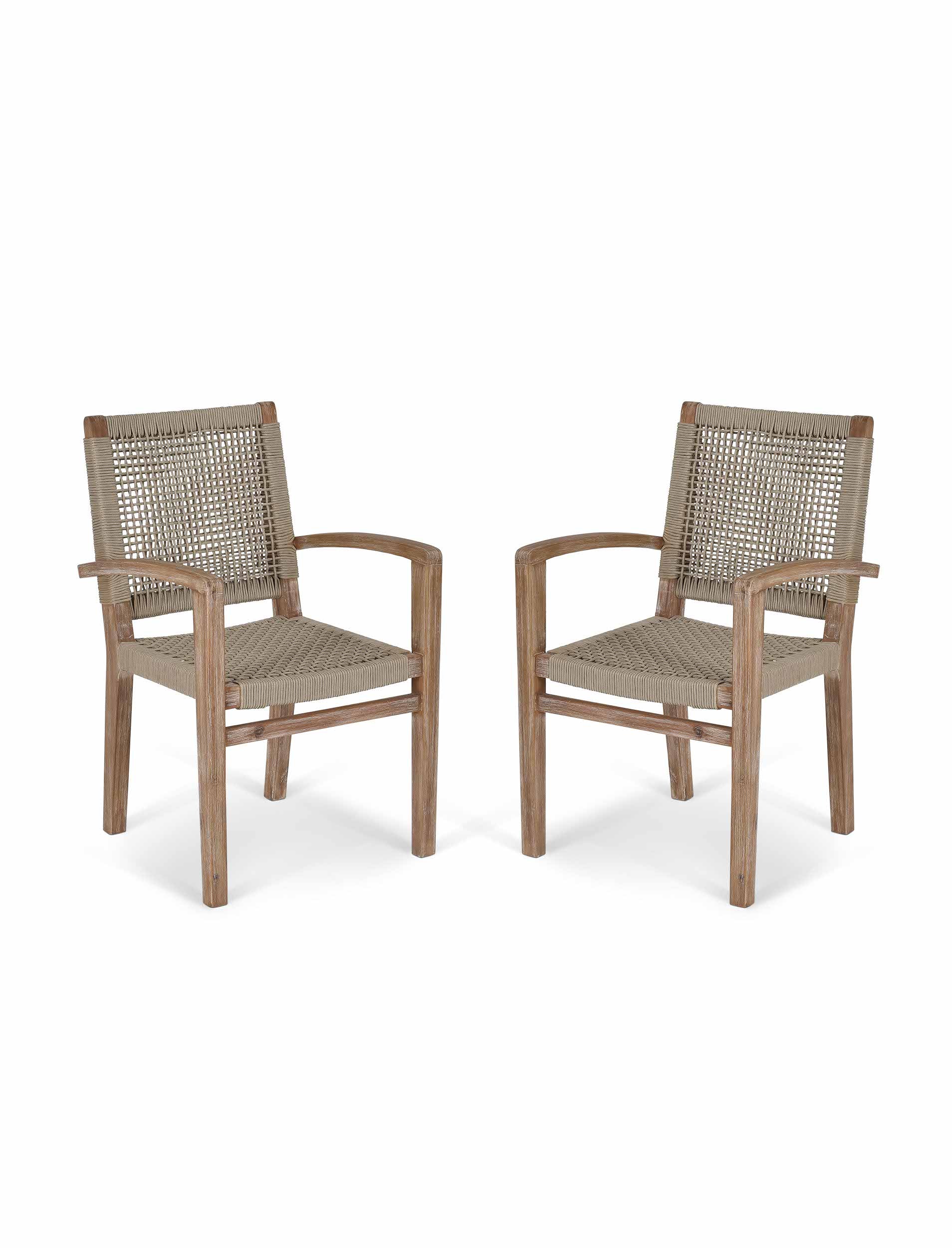 A contemporary choice for outdoor or indoor gatherings, our Chilford Carver Dining Chairs come as a set of two and help create an elegant focal point for a patio or dining room. Crafted from solid acacia and featuring classic garden chair arm rests, they look at their best when teamed with our Chilford, Burcot and Burford Dining Tables for magazine-worthy home and garden styling.