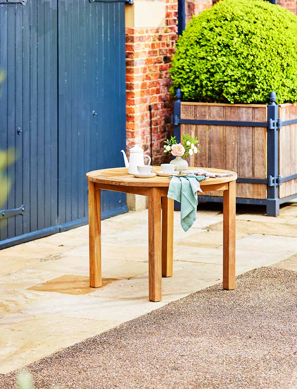 Made from solid teak, our robust, round, 4 seater Churn Table is perfect for enjoying all year round alfresco dining, in your outdoor space. Whilst compact in size, with a diameter of 100cm, you can easily seat 4 around its circumference, ideal for small gardens, terraces, pubs and restaurants.