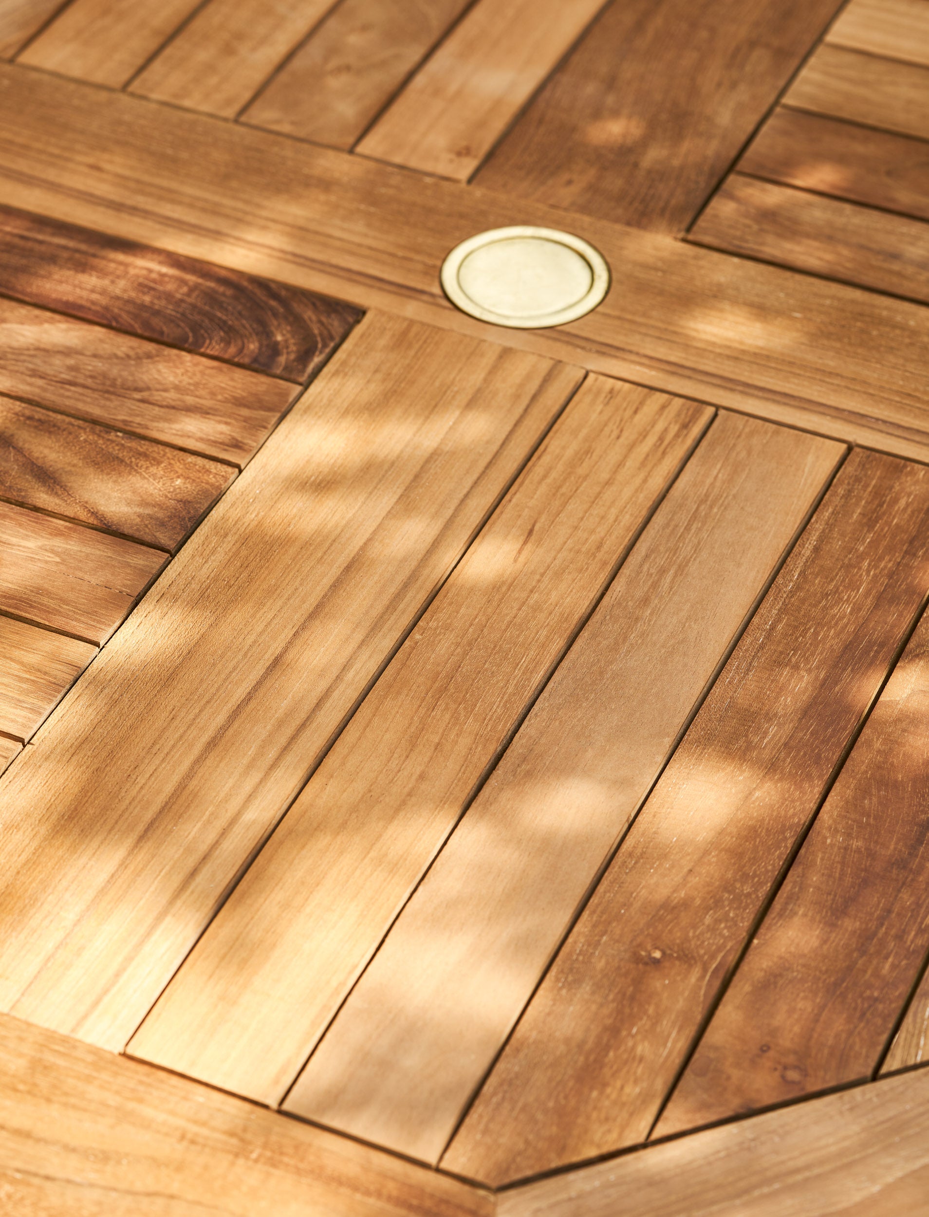 Incorporated parasol hole with stylish brass fitting sleeve and cap