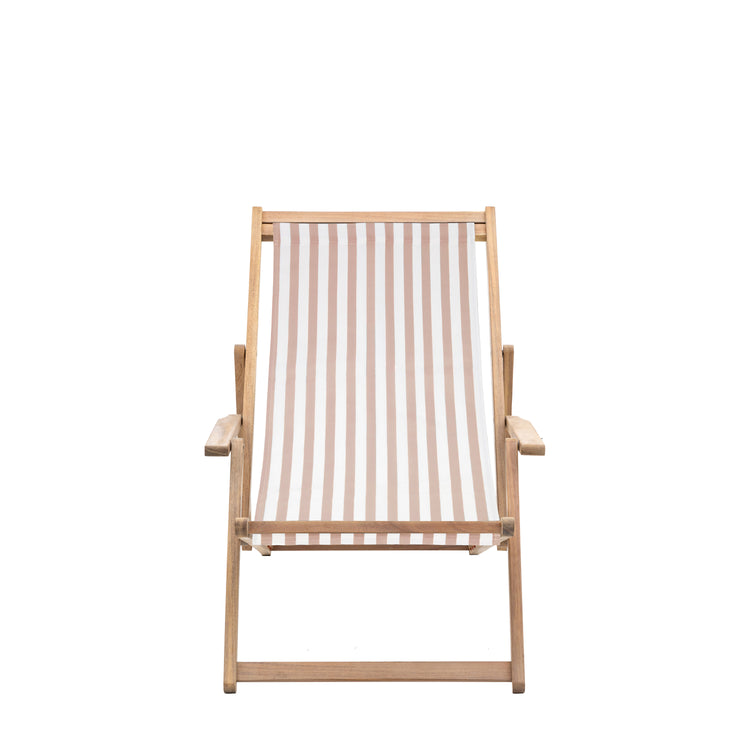 Indulge in the warmth of summer rays while reclining in the timeless Gennith clay-striped deckchair. With three adjustable positions and comfortable armrests, this chair is the epitome of relaxation for those leisurely summer days. Its foldable design ensures effortless storage when not in use, perfect for the beach or garden.