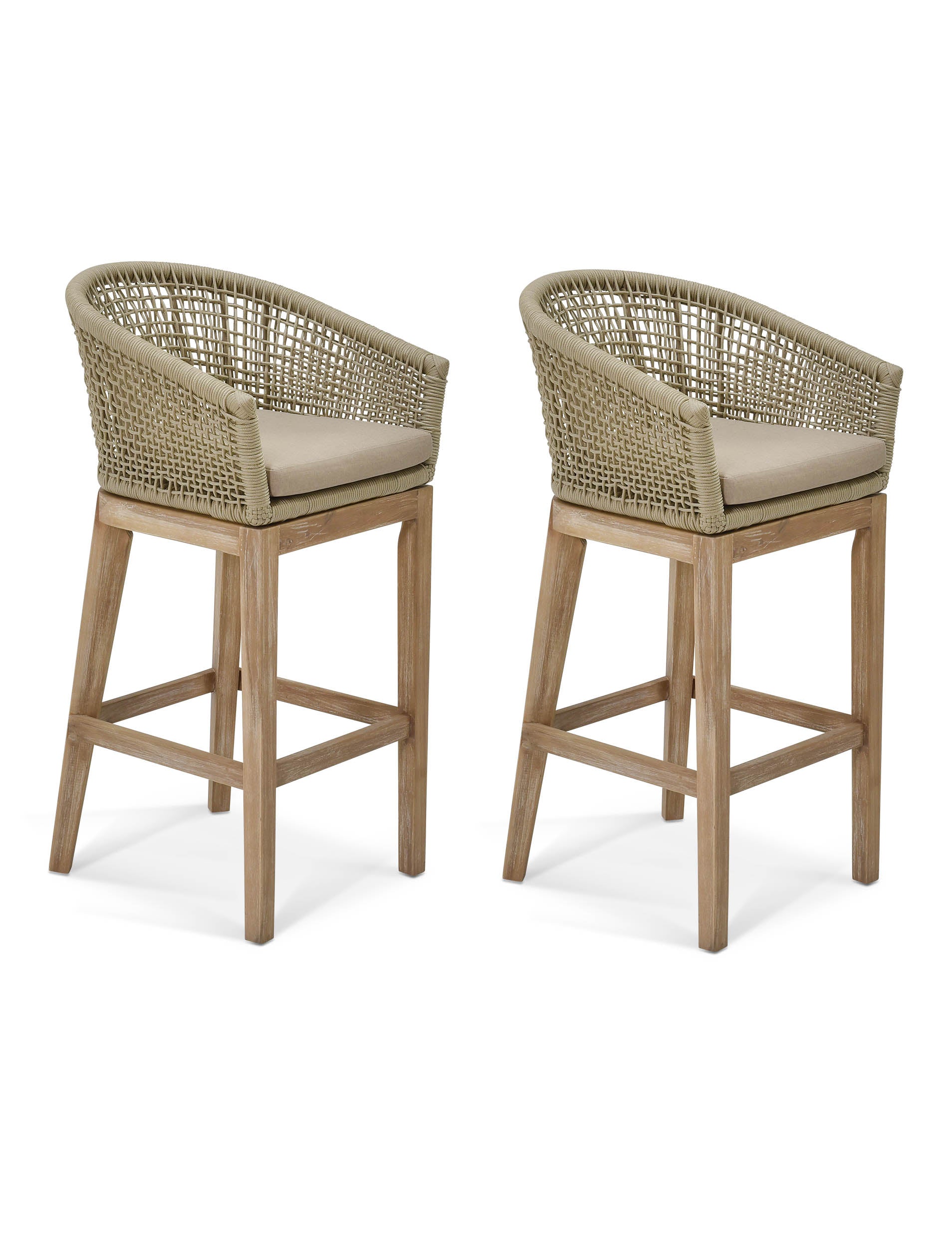 A bar stool that's both comfortable AND stylish? That's our Lynton Bar Stool. Coming as a set of two, this bar stool will turn a patio or decking area into a sophisticated outdoor living space. With its comfy Grey-coloured seat pad and luxuriously thick back cushion, this is a stool you can really sink into. Designed to match other outdoor furniture in our Lynton collection, this bar stool pairs perfectly with our Porthallow Bar Tables for any al fresco gathering.