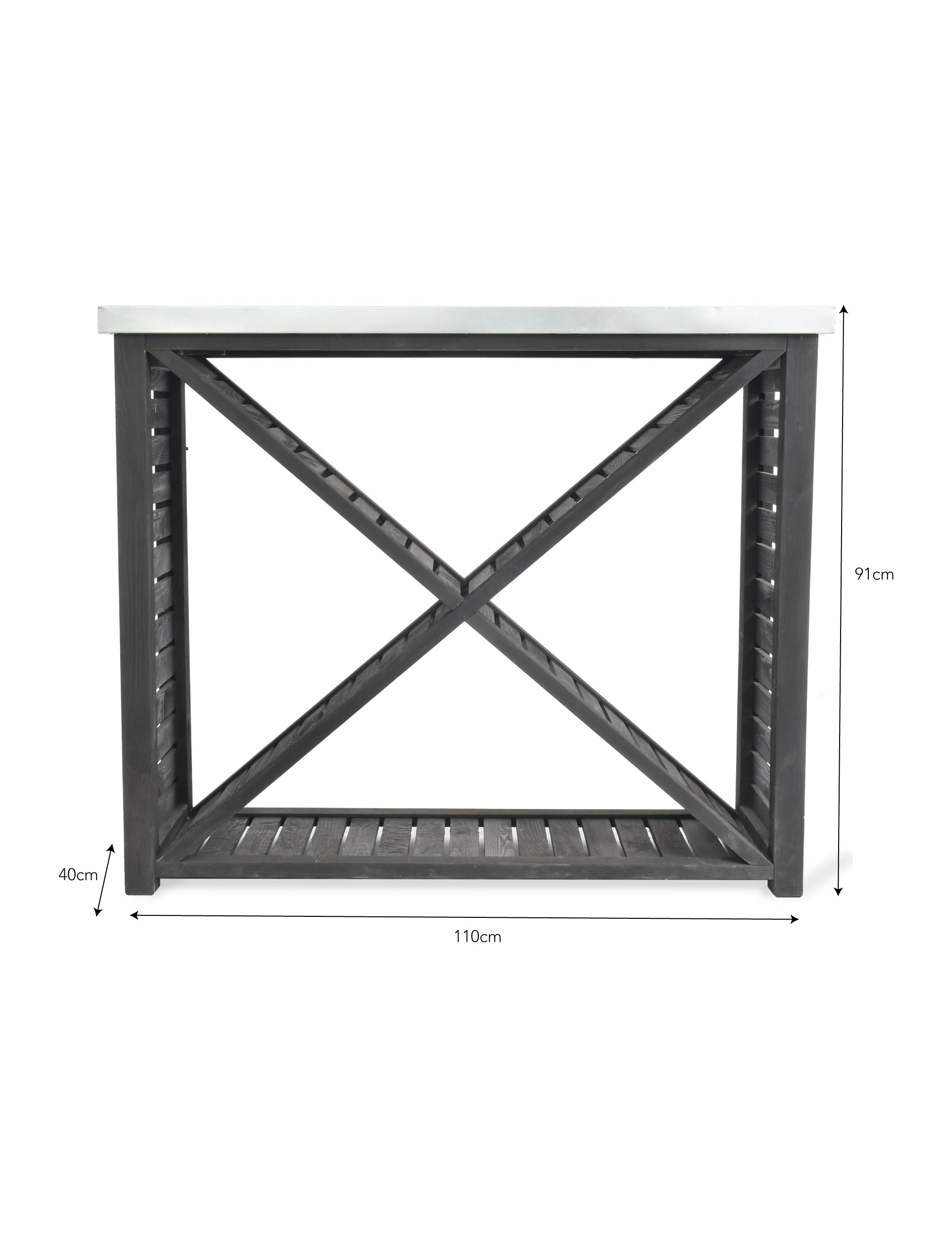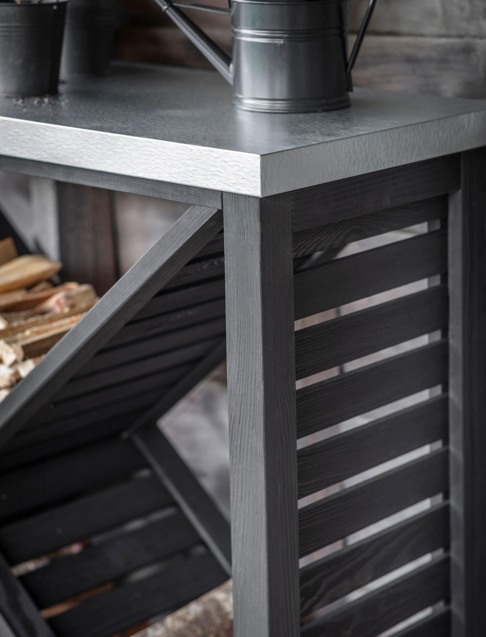 Making log storage a feature in any home is an easy way to add some style points. And it doesn't come much more stylish than the Moreton Cross Log Store. Crafted from blackened Spruce that's both durable and weatherproof, the log store is contrasted with a Galvanised Sheet metal top that doubles as extra storage or shelving. Suitable for indoors and out, the four equal sections can be used for both logs and kindling ready to get that fire going.