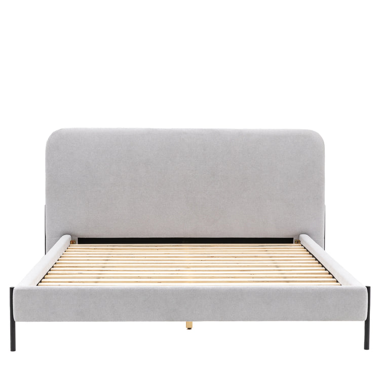 This contemporary double bedstead showcases a design characterised by its clean lines, making it a versatile addition to various interior styles. The elegant black metal legs complement the soft curves of the rounded headboard, creating a chic look that infuses your bedroom with a modern touch.