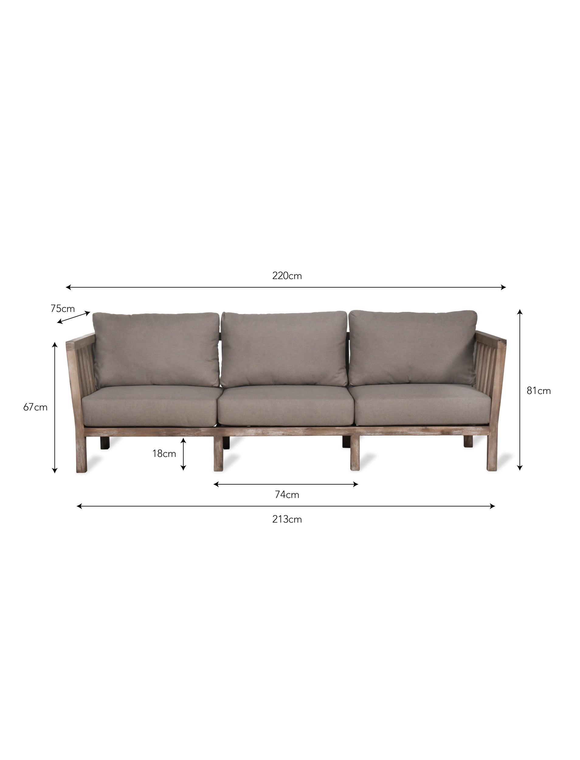 Enjoy sophisticated outdoor lounging with the Porthallow 3-Seater Sofa. Designed to sit stylishly in all manner of garden styles, the whitewash acacia wood and accompanying grey cushions make for an uplifting addition to outdoor spaces. Perfect for an addition to patio spaces alongside the Porthallow Rectangular Coffee Table, or a couple of Armchairs.