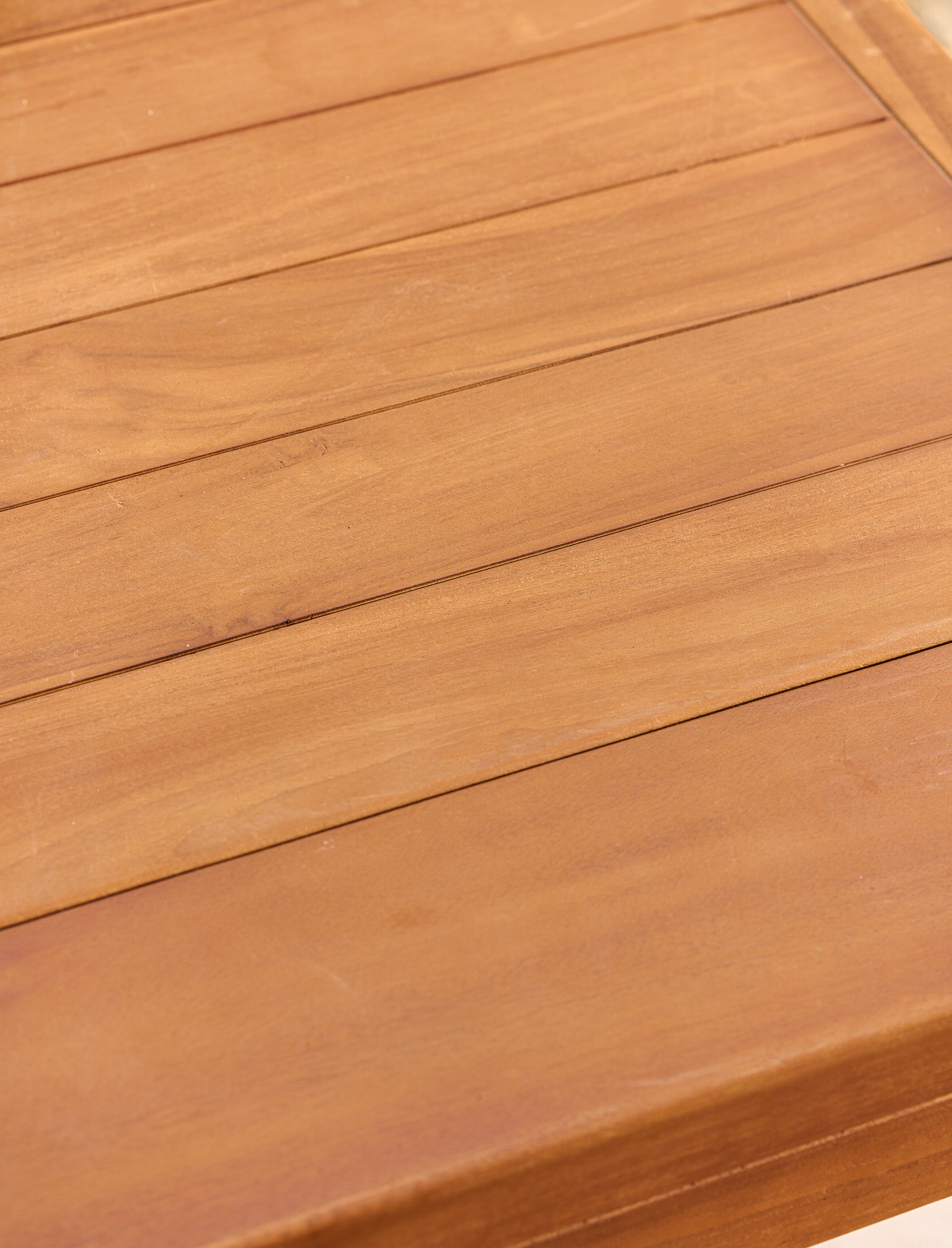 This strong wooden table is naturally weatherproof, meaning it will happily sit outdoors whatever the elements through at it. Clever adjustable feet caps on the legs keep it stable on uneven paving slabs, as well as keeping the legs from sitting in water. Perfect the patio by pairing it with our matching Radley Outdoor Carver Chairs.